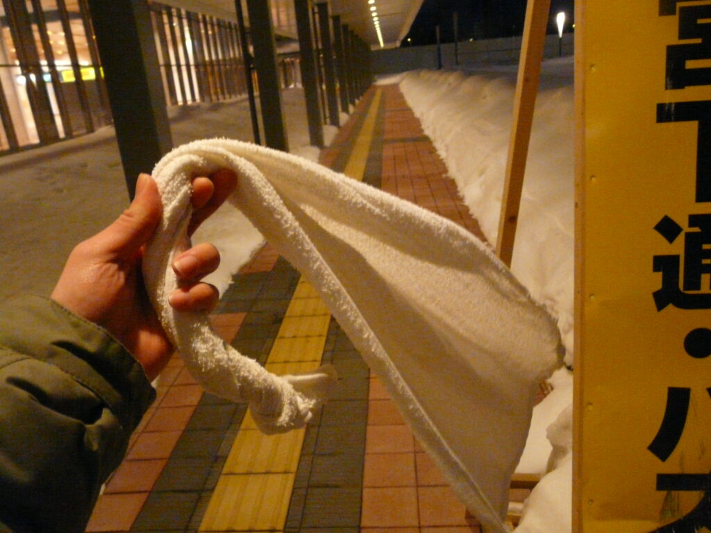 試しにベタに濡れタオルを振り回してみたら、割としっかり凍りました!