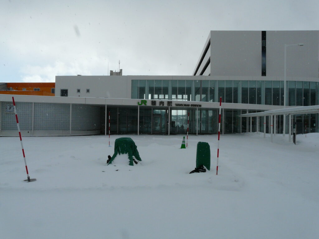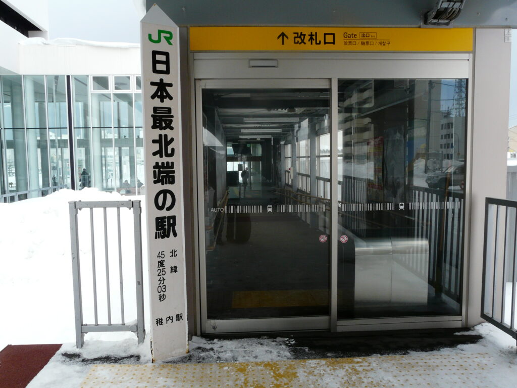 南稚内駅が近づくと急に建物が現れます。この南稚内駅は稚内市の市街地にあるため、稚内駅の周りよりもチェーン店などの店舗が多いです。そのためこの辺りには「日本最北の〇〇」が多数出没します。