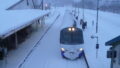 降りしきる雪の中まんべくんはヌプリ号を見送ります。ヌプリ号は一路函館に向けて走り去っていきました。