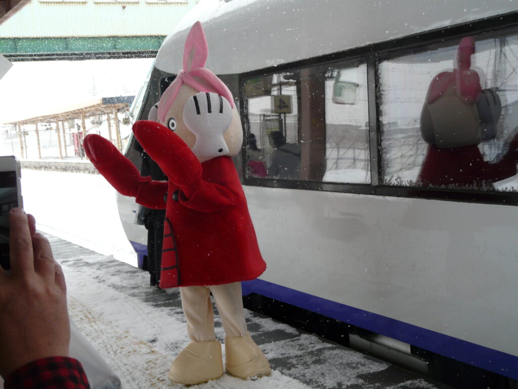 長万部ではご当地ゆるキャラである「まんべくん」が待ち構えていました。