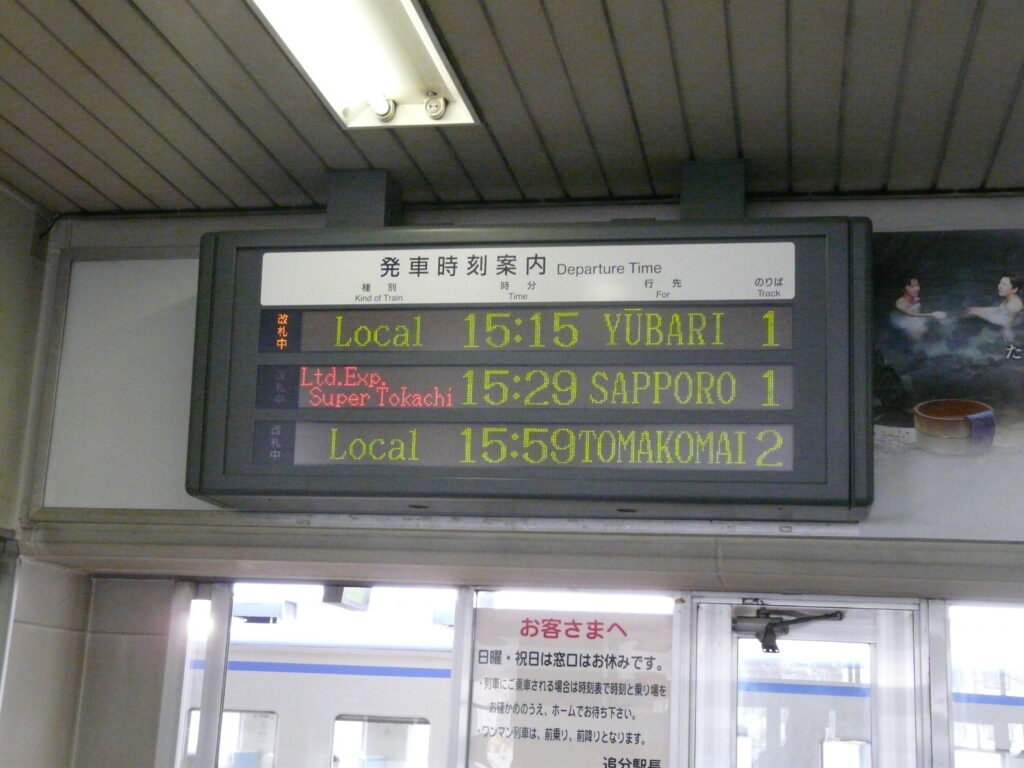 ↑行先は札幌や苫小牧と行った主要都市、まさに交通の要衝です。