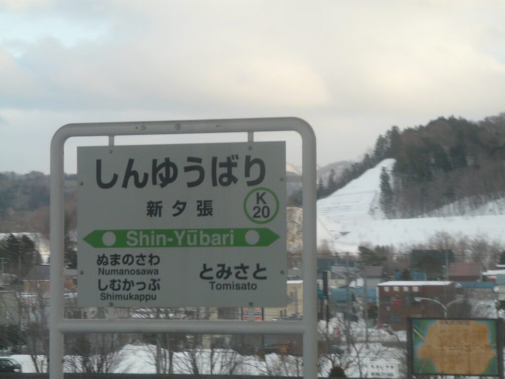 夕張支線を走り、終点の夕張に到着。夕張駅は以前はさらに北にありましたが、平成に入ってから現在の位置に移動しました。駅前には「ホテルマウントレースイ」があり、その横にはスキー場が併設されています。