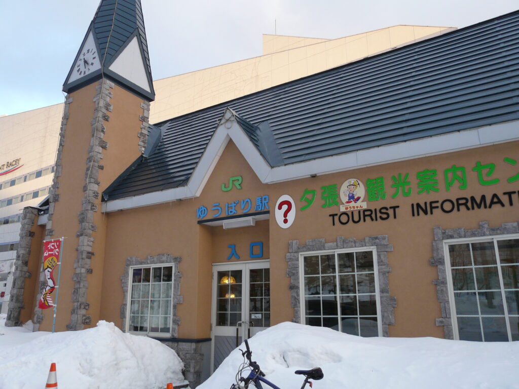 ↑夕張駅は一面一線の小さな駅、駅前には建物が多いですが、人はまばらです。寒い中出歩く人も少ないでしょうか。