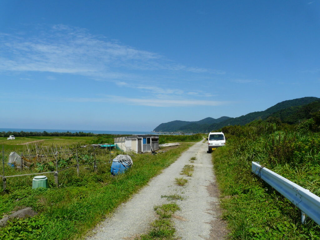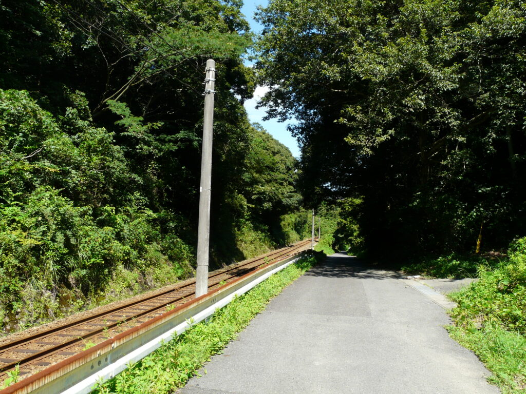 特牛駅は南側には国道435号が通っており、駅から少し進めば大通りに合流できるためアクセスは容易です。一方の山陰本線沿いの道はご覧の通り緑に囲まれた素晴らしい道路です。