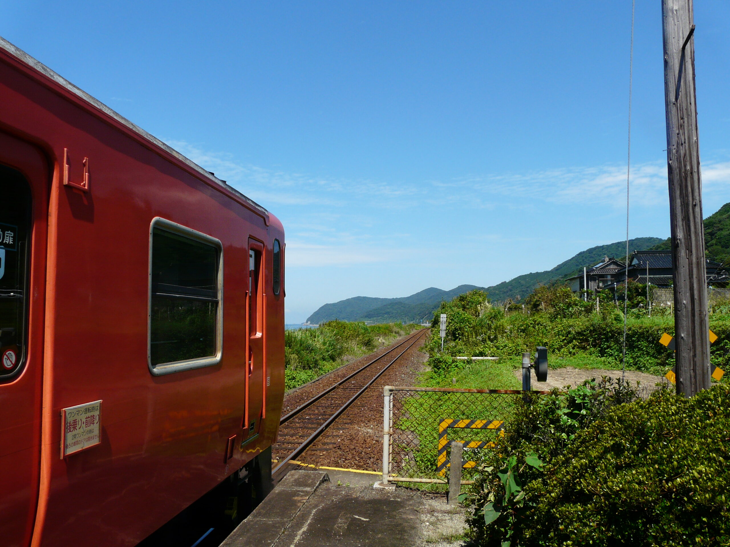 引き続き山陰本線に乗り込みます。今日は駅巡りということでまるで旅番組のように実際に車窓を見ながら気になった駅へ行ってみます。再び下関方面に向かっていると車窓には海が見えてきます。この区間も非常に車窓がきれいで乗っていて心洗われます(普段が汚いので)。