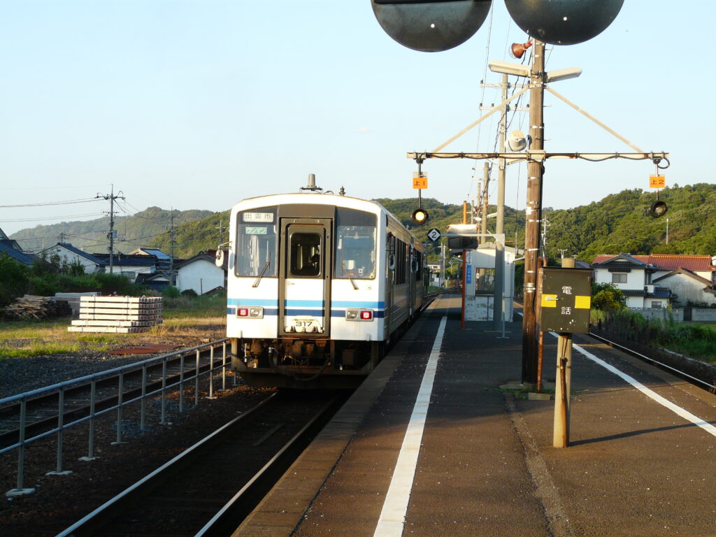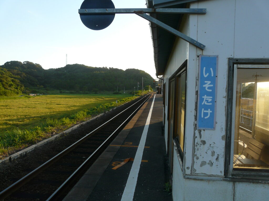 この駅舎?もみたかったというのもありますが、この駅の近くに山陰本線が海沿いを走行するので、沈む夕日を見るのと列車を同時に見ることができるような場所を探しに来ました。