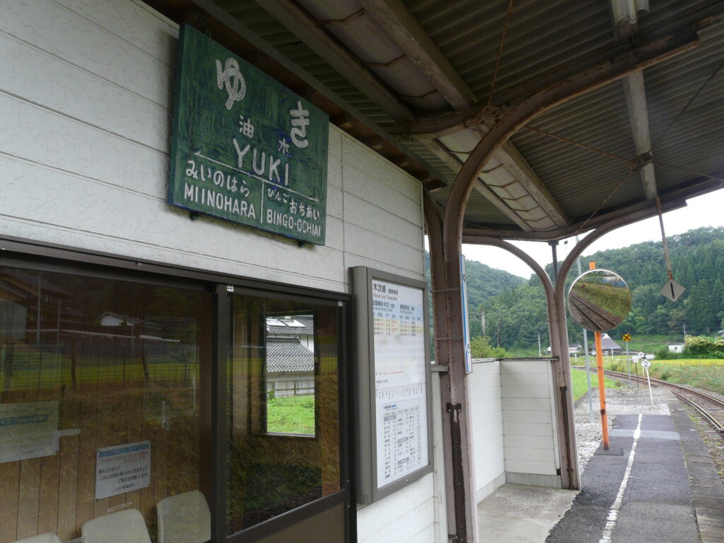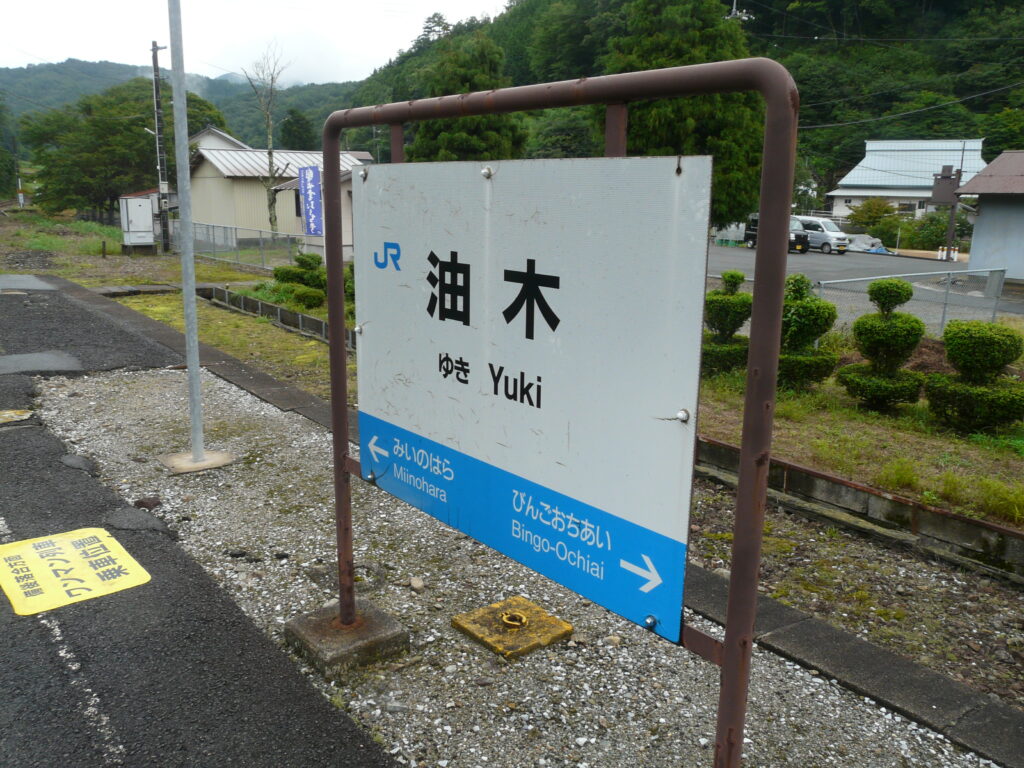ここは「油木駅」。終着の備後落合駅の一つ手前の駅です。出雲横田から備後落合の区間の中で(大変失礼ですが)”最も特徴のない駅”だと思っていたため、一度降りてみたかったのです!