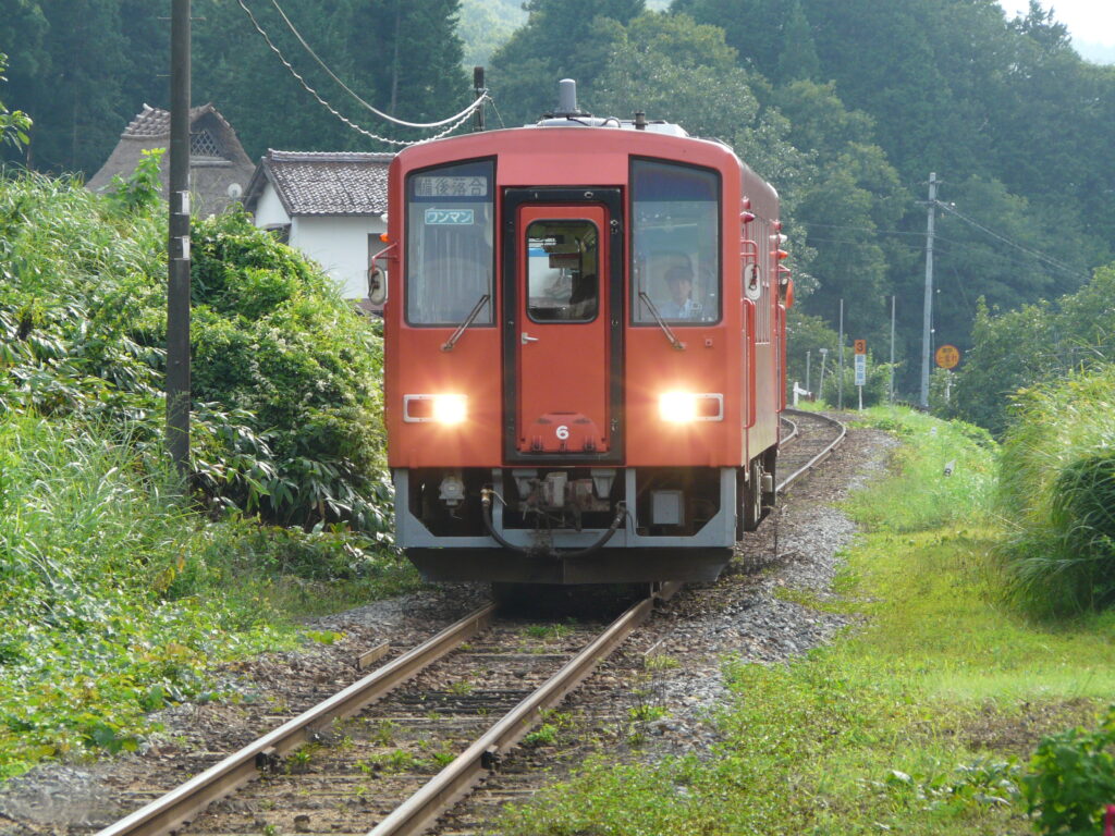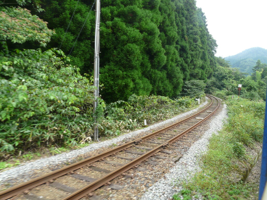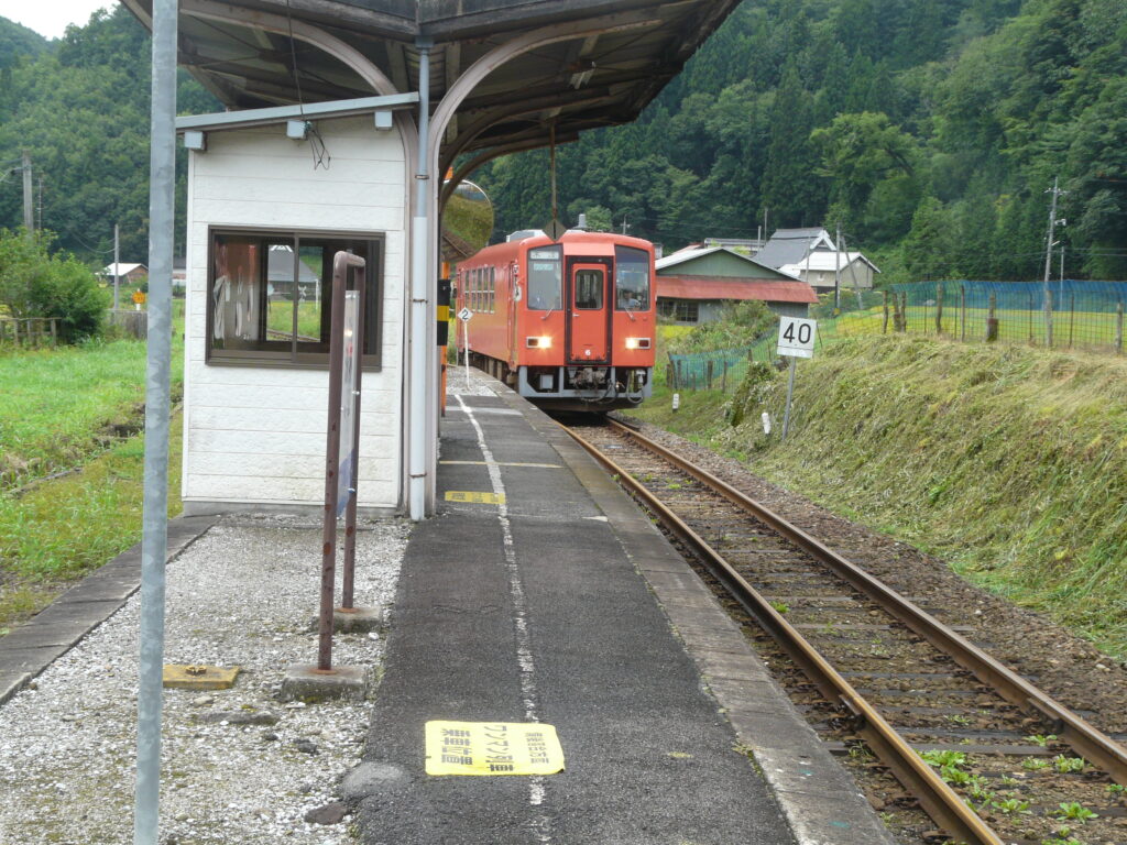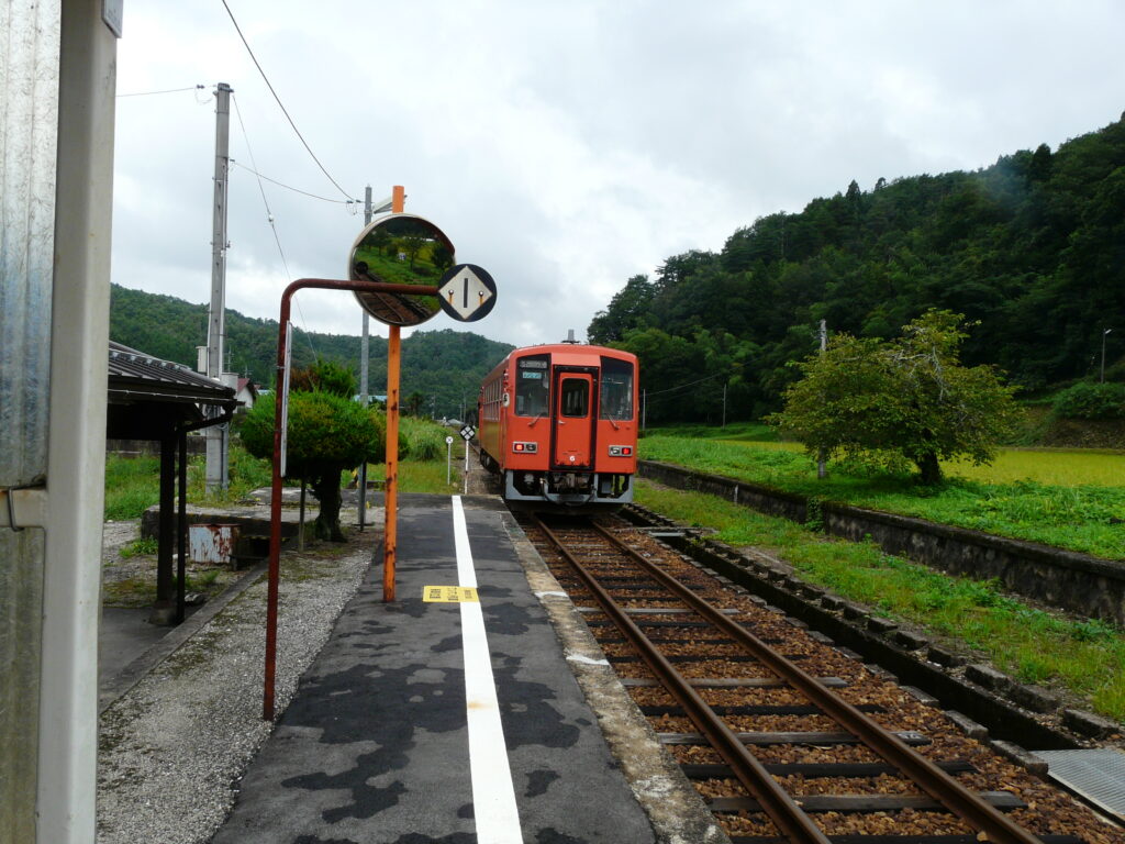 発車すると先ほど通ってきた線路を横目に下っていき、少し進んだ先の出雲坂根駅に停車します。