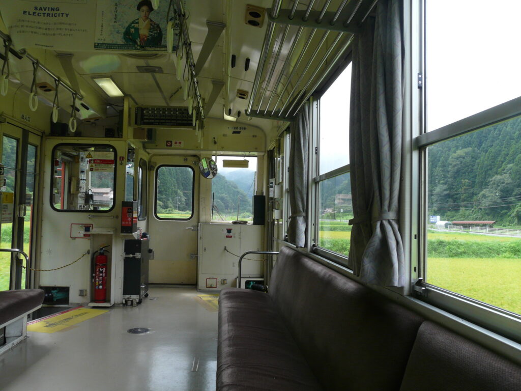 一両編成の列車には乗客は少なく、外には緑色の多い車窓が流れます。