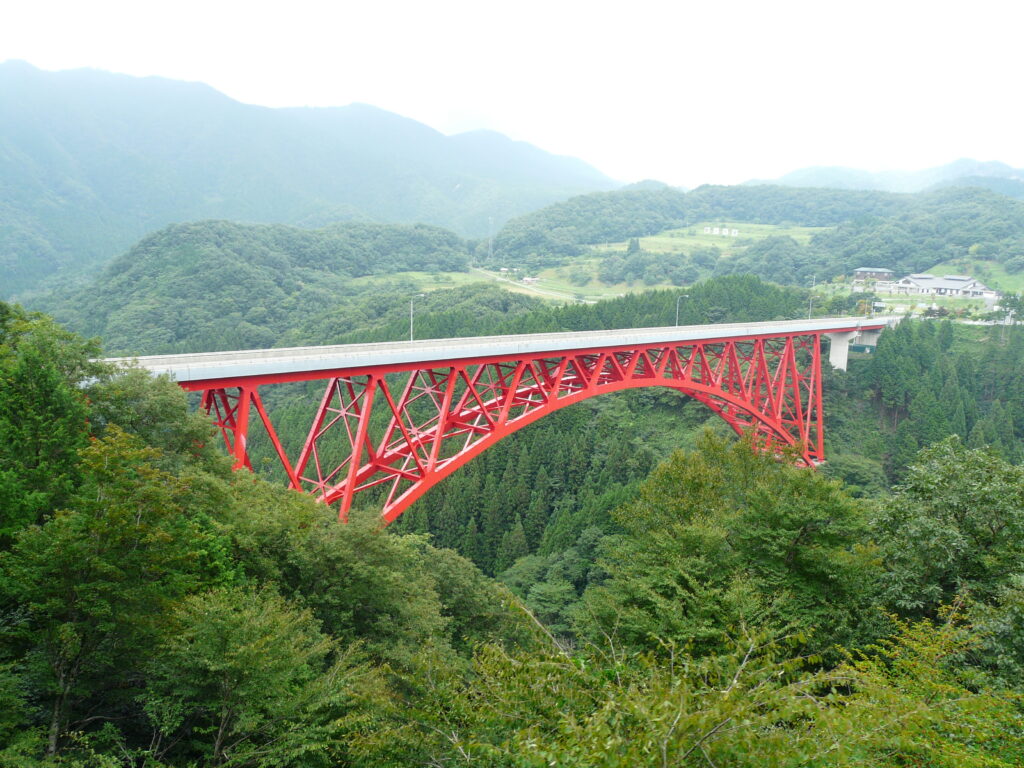 三井野原駅を出てしばらくすると目立つ大きな橋が現れます。これは国道314号の「奥出雲おろちループ」です。私が初めて木次線を訪れた際には大雪のため代行バスで移動しましたが、そのおかげでおろちループを走行したことがあり、きれいに列車から眺められたのは非常に感慨深いです。