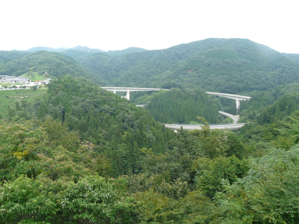 このループ橋は11の橋梁と3つのトンネルから構成され、高低差105mを移動するためにつくられた日本最大規模の二重ループ方式の道路です。坂に比較的強い自動車ですらこのような工夫を持って高低差を克服しています。
