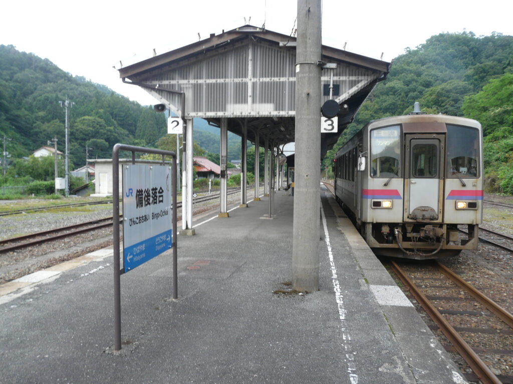 しばらくのどかな風景や山間部を縫うように走行し、終着の備後落合駅に到着。