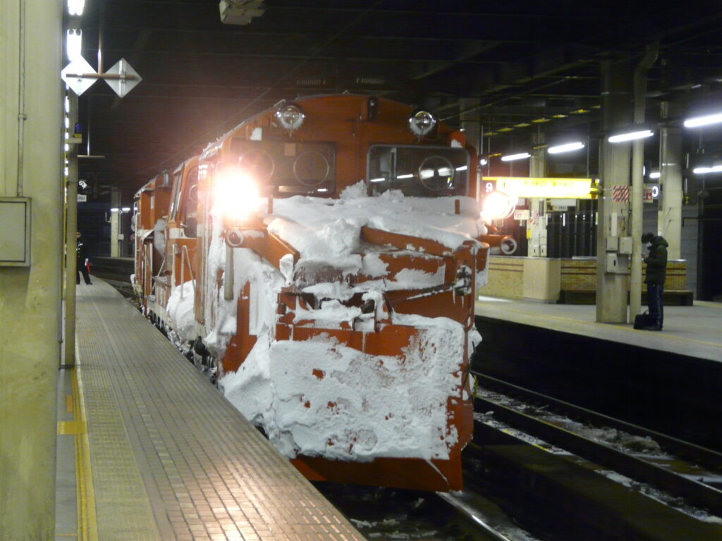 朝早くに札幌駅に向かうと、ラッセル車が雪をいっぱいつけて停まっていました。