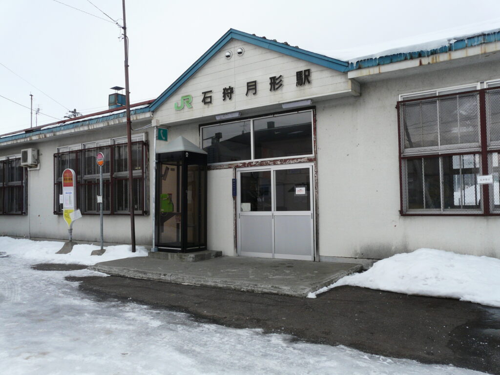 この駅で向かい側に泊まっていた新十津川行きの列車に乗り換えます。発車まではしばらく時間があるため、石狩月形駅を見学します。