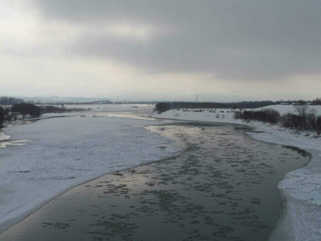 石狩川を渡ります。石狩川は長さは信濃川、利根川についで第三位、流域面積は利根川に次いで第二位であり、日本三大河川の一つです。
