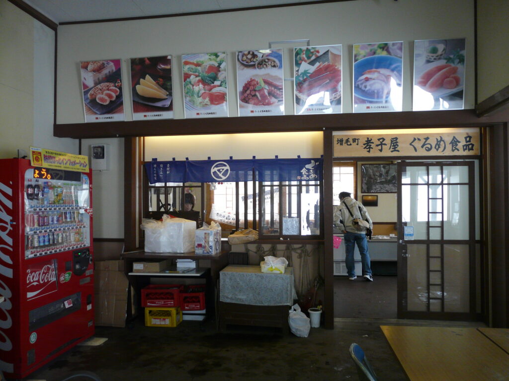 駅の中には水産加工品を販売する「孝子屋」(ここや)の直営店がありました。路線が廃止された今も営業しているようです。