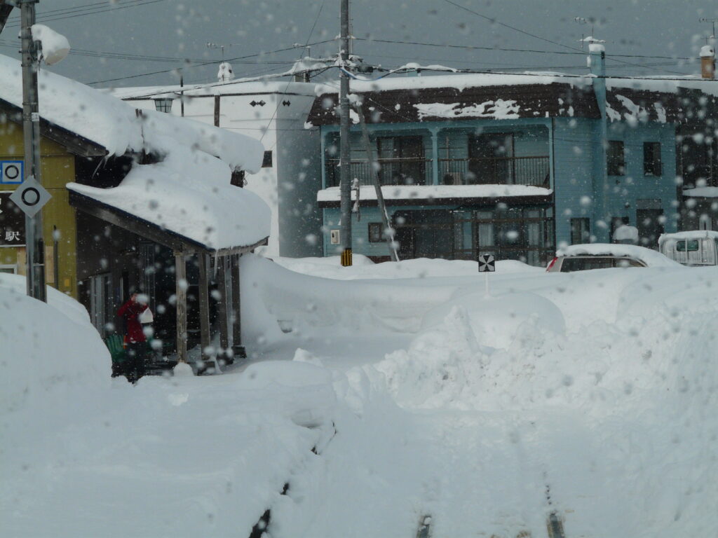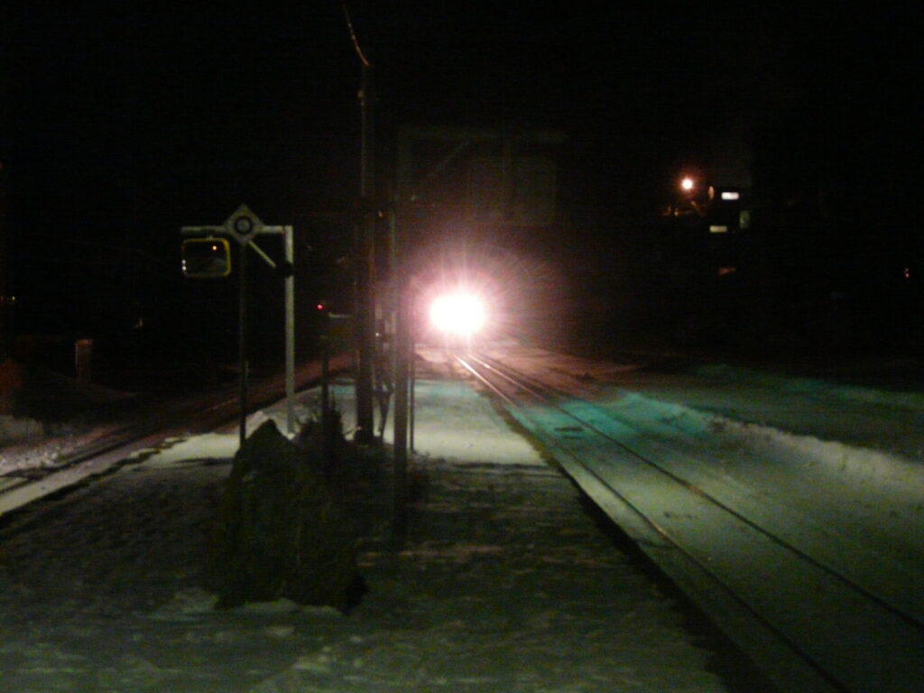 駅から少し歩くと周辺に建物はわずかにありますが、一面が農耕地と思われる雪原と林で埋め尽くされており、やはり人の気配はありません。