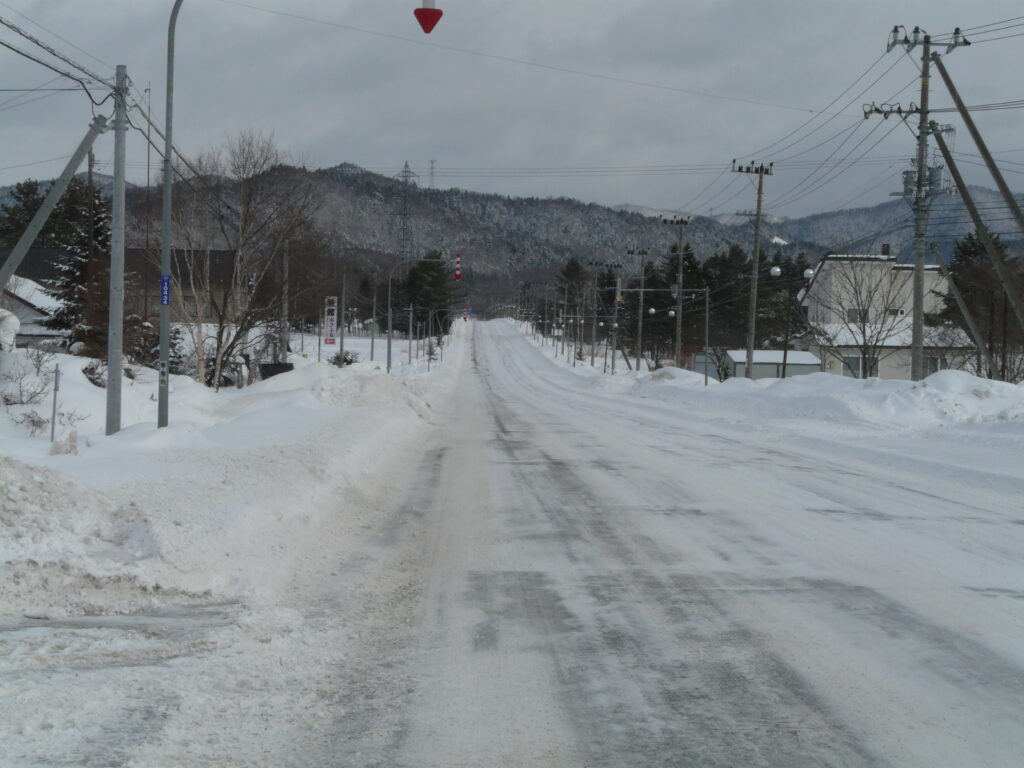 駅前は隣に「占冠村物産館」と書かれた建物があり、周辺には民家が数件見えます。占冠村の中心部は駅から少し離れた場所ですが、占冠村は存外に栄えています。