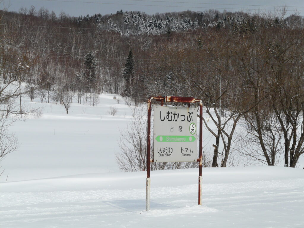 答えは「しむかっぷえき」です。占をしむ、しめと読むのも難しいですが、冠をかっぷと読むのは完全に北海道特有です。ほかにも新冠(にいかっぷ)や愛冠(あいかっぷ)などがあります。