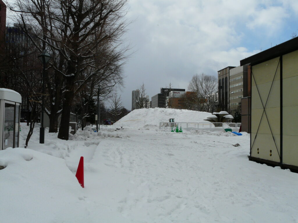 そうして大通公園に来ました。一昨日までは「さっぽろ雪まつり」が開催されていましたが、期間が終了した後に来てみました。