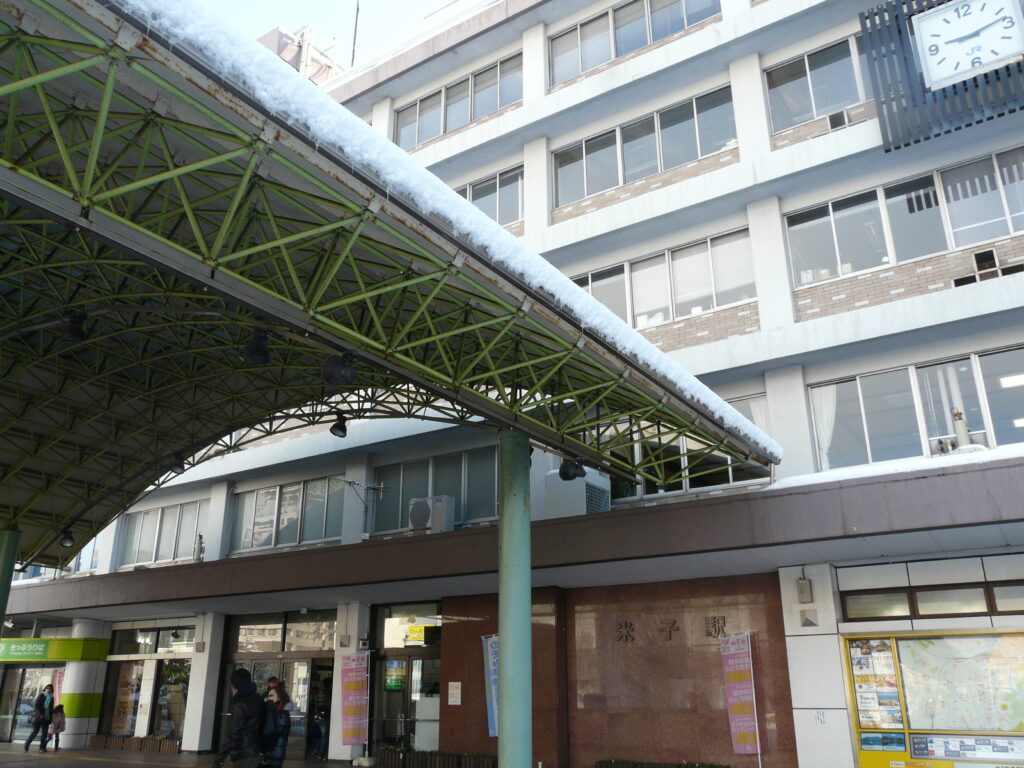 そして列車を乗り通し、新見駅に到着。列車が新見に到着する前には雪は少なくなっていました。