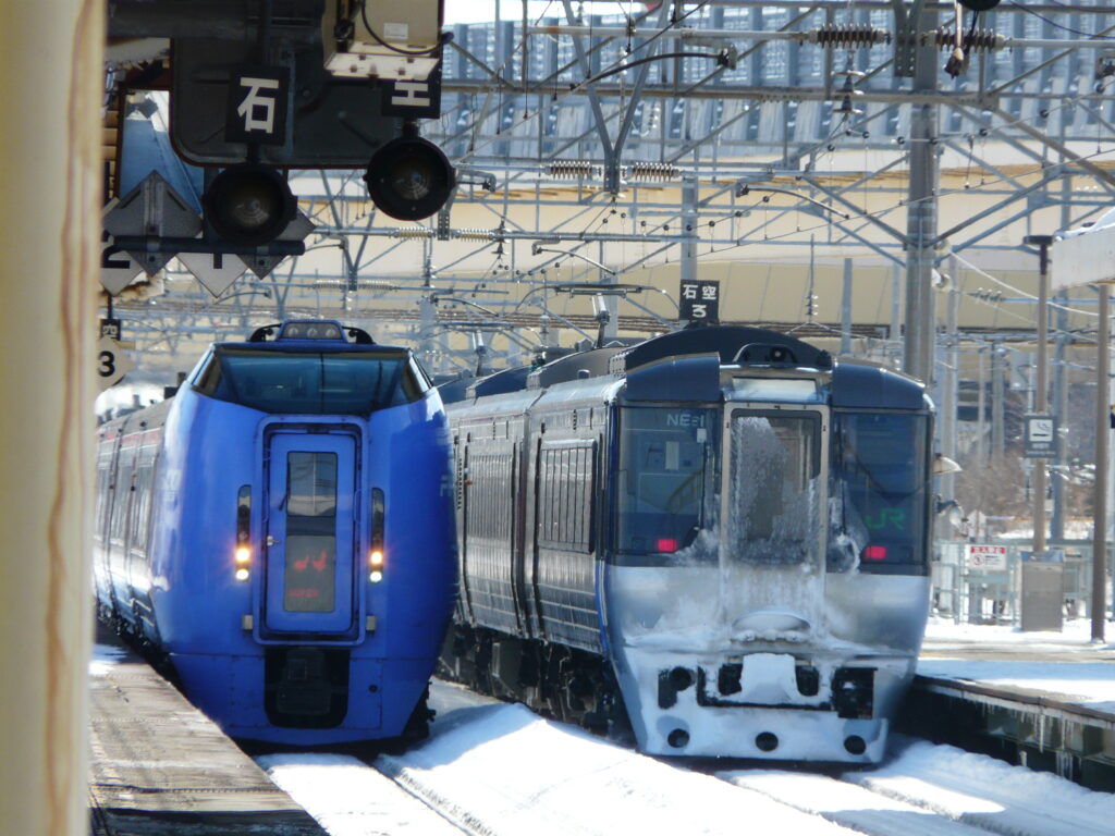 ここは千歳線と石勝線の分岐駅となっており、多くの特急列車が行き来します。