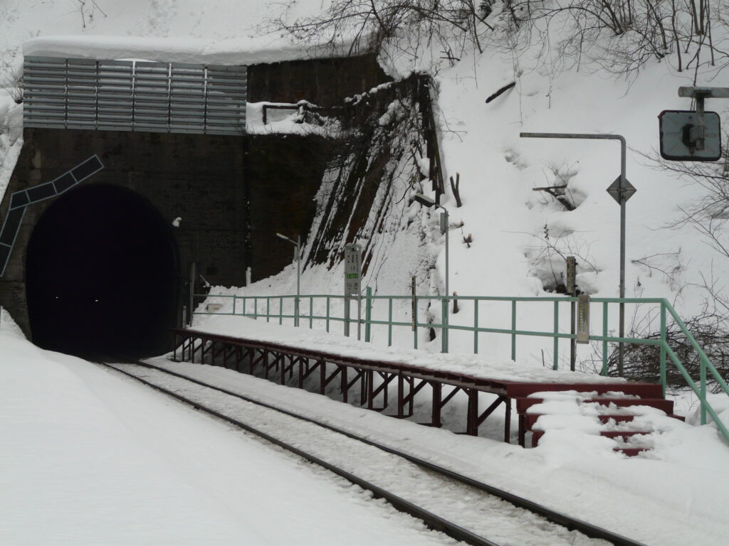 この駅はトンネルとトンネルに挟まれた場所に立地しており、周辺は民家などが全くない無人地帯です。