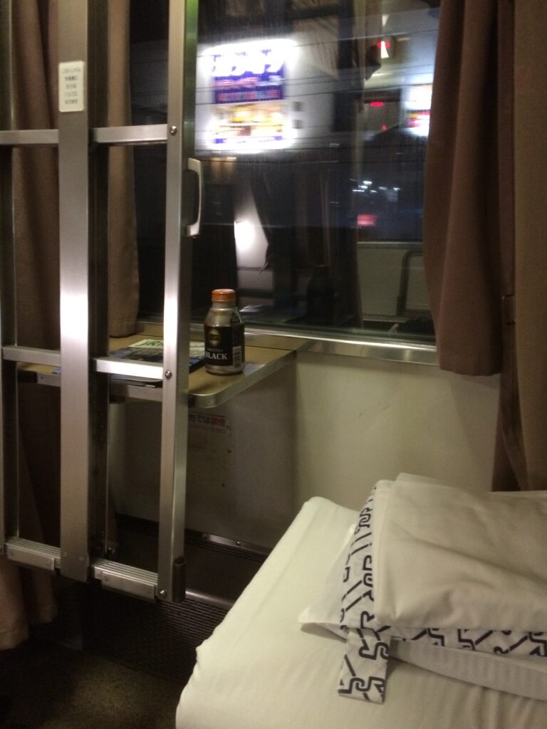 そうして真夜中に共用スペースを楽しみつつ、車窓やB寝台の寝心地を味わいながら過ごしていると、気づけば未明の青森でした。ここで機関車を付け替え、いよいよ青函トンネルに入ります。