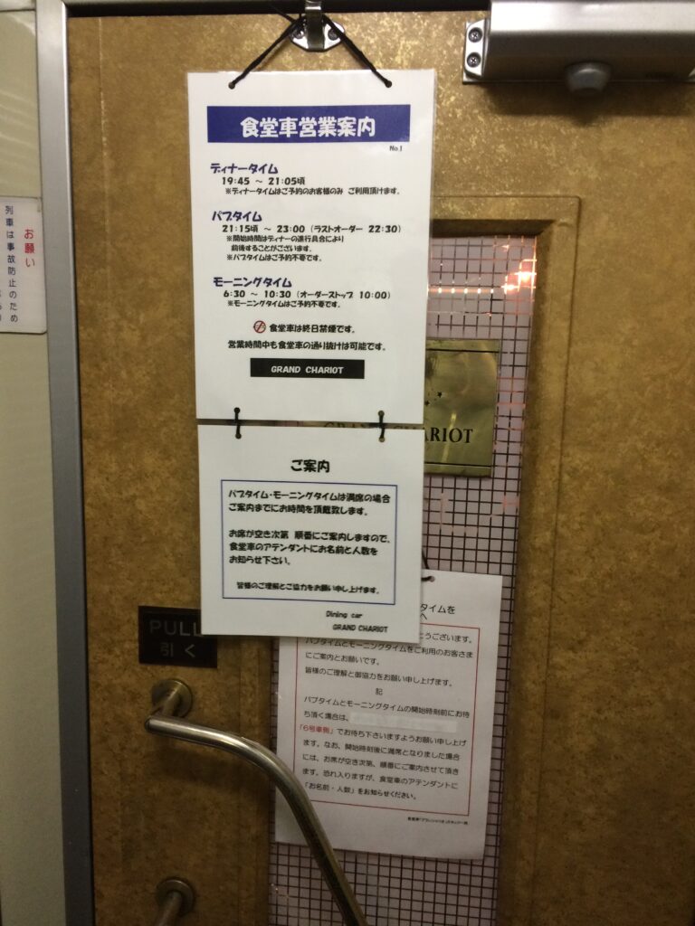 7号車には「グランシャリオ(GRAND CHARIOT)」という食堂車がありました。