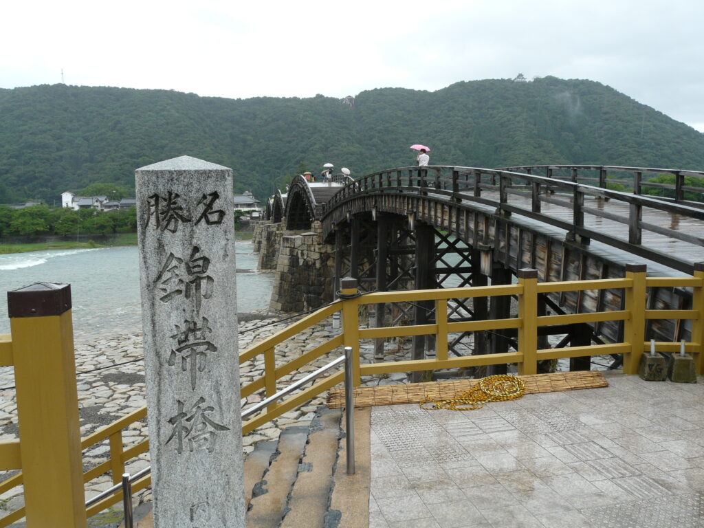 橋の対岸には旧藩主の屋敷跡や岩国城へ続くロープウェイ乗り場があり、岩国城からは錦帯橋・錦川や岩国市街地が一望できます。(作者はまだ行ったことがありません)